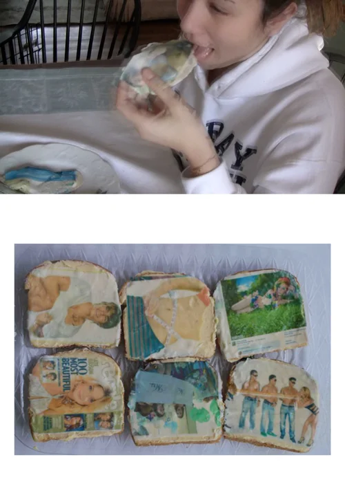 Wonder bread, Purdue chicken breast, edible ink.